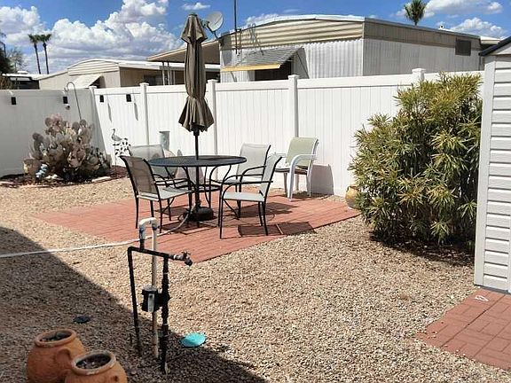 WELCOME HOME!! this adorable 2008 CAVCO home has All appliances, stackable washer and dryer, some Furniture optional. Nice front porch, 2 car tandem carport, Partial fenced yard, patio & storage shed. Casa Del West is a gated desirable ADULT community with pools, club house, fitness center, activities, and so much more!