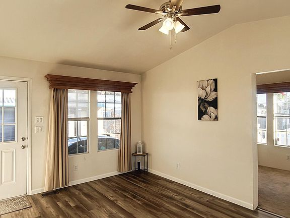 Located in the charming gated 55+ Community of Casa Del Sol West, is this very nicely renovated single-wide manufactured home with 2 bedrooms and 2 baths. Vaulted ceilings, new luxury vinyl flooring in the kitchen and master bathroom, nuetral colors, and stylish shaker style kitchen cabinets make this beauty move-in ready! Covered parking for 2 cars. Stacked washer and dryer included. This lively community has a heated pool/spa, fabulous fitness center, a grand club room with kitchen and plush grass areas with outdoor grills and game boards. Request a showing today!