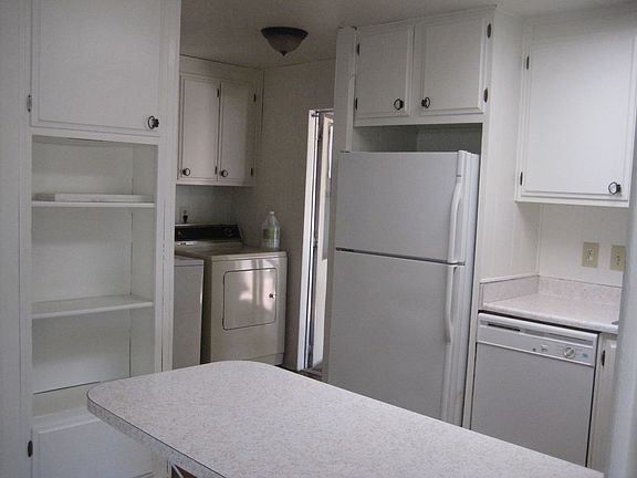 This home is a large doublewide home with a large living room and family room with a built in bar, a nice open kitchen with plenty of cabinet and counter space. Good size master bedroom and guest room. Just installed new carpet and paint, washer and dryer in unit. All appliances are included. Storage shed and screened in Arizona room. For only $12,000.00 this home will go quick! This home qualifies for the 5 year lot rent