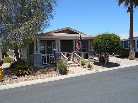 his is a great 2 bedroom, 2 bath home with a great layout! Master bedroom has a large walk-in closet and a large bathroom. Second bedroom is good size and spacious. Home is very open and spacious with a large front porch, large fenced in backyard, large storage shed off carport and comes fully furnished! Too much to mention, must see to truly appreciate! This home is located in Casa Del Sol Resort West a private 55+ gated community offering residents an active lifestyle with such amenities as a heated 50-foot swimming pool and spa, clubhouse, library, and on-site sport facilities including a 9-hole pitch and putt practice green. Show your skills in a game of pool, play cards with friends or enjoy our weekly potluck dinners. Brush up on your computer skills with a visit to our Computer Cafe with high-speed internet access or keep in shape with a visit to our Executive Fitness Center. This beautifully landscaped community is located in Peoria, an area known for gourmet restaurants, world class entertainment, and shopping at the Arrowhead Town Center Mall. Sports fans should note that Casa Del Sol Resort West is a short drive from the Peoria Sports Complex, spring training home of the Seattle Mariners and San Diego Padres, Surprise Stadium, spring training home of the Texas Rangers and Kansas City Royals, Cardinals Stadium, Glendale Arena, Phoenix Coyotes Arena, America West Arena, and Chase Field. Stop dreaming and start living! Welcome home!
