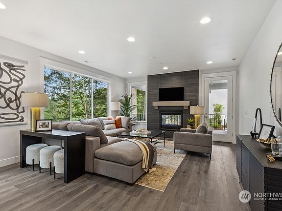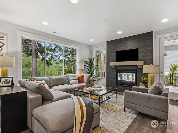 Our flexible 3542 plan offers 5 beds, 4 baths, bonus rm, & loft! The kitchen is an entertainer's dream with a massive island full of storage, JennAir appliances, quartz counters, beverage fridge, soft close cabs, & more! Spacious great room w/ over-sized windows, a gorgeous tiled, double-sided FP & door leads to outdoor living & back yard. Main floor bed/office & 3/4 bath & mud room off of garage entry. 2nd floor boasts the primary suite, 2 more beds, utility rm w/ washer/dryer, huge bonus rm, & full bath. Flexible 3rd floor has another bonus rm/loft, 5th bed, & 3/4 bath. Partial lake views from 2nd/3rd floors!Includes fully landscaped yard w fence & irrigation.AC, car charger,& more! Close to 405/I-90 & Lk. Washington! Complete late April.