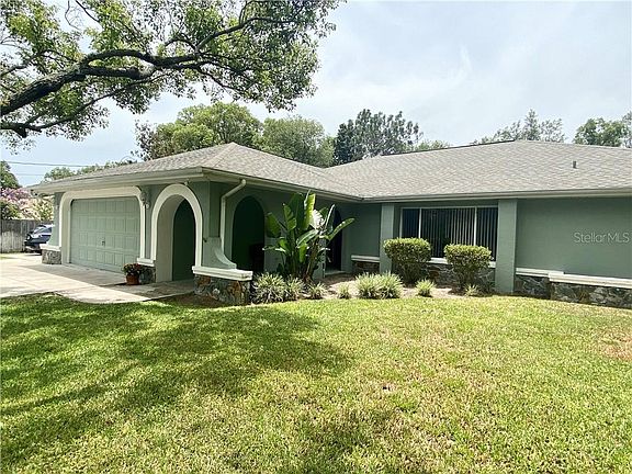 Location, Location, Location! Minutes to the Veterans Express way and right off of Spring Hill Drive. This home is just over 2200 square foot, on a half acre and is full of potential!! This home has a split floor plan, with the bedrooms on one side of the house, and the master on the other. This home is equipped with a Digital Life Security system, including 3 exterior cameras, as well as motion sensors in the home. The front door has a Keypad lock. The exterior of the home was painted in 2016, and has beautiful stone work. This home has a beautiful salt water pool, with a new (2019) pool pump system, in a large screened lanai. This home offers a long 3 car wide driveway, as well as an extra concrete pad to the left of the garage!! Half of the garage has been converted to a home gym, and the other half is storage. You won't want to miss this one!!!
