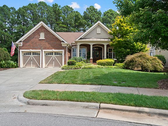 Nestled in the Regency neighborhood at Brier Creek Country Club, this ranch with a finished basement offers detailed upgrades and unparalleled amenities. Gorgeous cut hardwoods cover the main level with double crown molding throughout the home. Separate dining and living rooms offer additional areas for entertaining. Gourmet kitchen with granite countertops, SS appliances, and tile backsplash, as well as an island for additional prep space. Cozy up in the sunroom with true decorative beadboard and slider doors that exit out to the rear deck with a natural gas hookup for grilling. This open floor plan offers generous family room space with a gorgeous floor to ceiling stone fireplace with gas logs, ceiling fans, updated light fixtures, and easy entry into the owners area. Owners suite has custom closet organization in the large walk in closet. Walk-in tile shower with decorative border tile, jacuzzi tub, and separate double vanities. Finished basement has large bonus room, crown molding throughout, full bathroom and 2 additional bedrooms. Perfect area for guests to have their own suite with wet bar, appliances and more! Unique 800 Sq foot workshop with utility sink offers plenty of space for hobbies, craft area, or potential workout space. Newer tankless water heater with recirculating pump to add instant, whole house hot water. Take advantage of lawn maintenance included in the HOA at Regency. Smart irrigation system installed. One time buyer contribution fee of $2000 at closing and $1500 initial social membership to BCCC. Enjoy the perks of the club with fitness, pool, golf and social events as well as meeting up with your fellow golfers after a round of golf for a cocktail in Deke's!