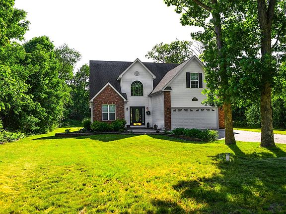 Private 2 story home located at the end of the street on a 1.5+ acre lot surrounded by woods. Walk into the 2 story foyer with open staircase. The first floor features hardwood floors and every room has cathedral ceilings (including the master bedroom and bath!) The kitchen features granite counters, pantry, a bar and eat in area with patio access... living room features stone fireplace and overlooks the gorgeous backyard. A huge master suite boasts a vaulted ceiling & french doors lead to the master bath complete with a jet tub with separate shower dual sinks The 2nd floor features all new carpeting with an open loft room that could make a great office/loft or possibly 4th bedroom in the future. Bedrooms 2 & 3. Tell your friends that you are hosting the next backyard party! huge patio area for entertaining complete with a hot tub and a new granite fire pit! Brand new FURNACE AND AIR CONDITIONING! Sump pump & kitchen appliances are less than 2 years old! Nothing left to do but move rig