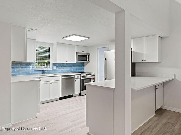 Active Under Contract. Welcome Home! Completely remodeled 2/2 in the heart of Spring Hill. Convenient to everything, shopping, schools, medical facilities, and more. Open concept leads to good flow and the loft windows provide lots of natural light. Brand New pretty much everything on the inside, kitchen cabinets, appliances, lights, fans, flooring, bathrooms, window treatments, doors, baseboards, etc, and on the outside, Brand New roof, vinyl siding, garage door. Like New Construction, but without the wait.