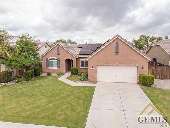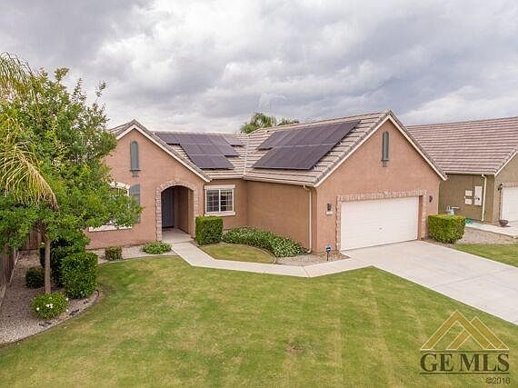 Take a look at this gorgeous home located in the Tesoro subdivision in Southwest Bakersfield. Shopping centers, schools, and parks are all close by. This home is zoned in the highly desired Panama-Buena Vista school district. This home was built by Centex in 2007. This split wing plan has 1819 SF with 3 bedrooms plus office and 2 bathrooms. The open floor plan is so inviting and spacious. The kitchen has lots of counter space and an extra-large breakfast bar. The cooking area has a smooth electric stove-top, but also has an option to install a gas cook-top. The kitchen and bathrooms have been modernized with smooth concrete finished counter tops. The lot is over 9000 SF with lush landscaping in front and back. New homeowners will love barbecues in this backyard since there's tons of space for play and relaxation. Electric bills will be super low in this home since it has OWNED SOLAR panels!
