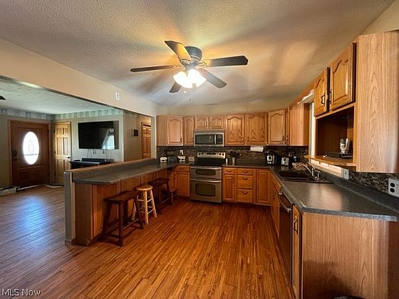 Country Delight! Lovely well-kept Ranch on corner lot with all the extras! Home featuring nice covered front porch, paved driveway, living room, eat-in kitchen with new stainless appliances, year-round sunroom overlooking backyard paradise! Large deck for grilling, leads to inground swimming pool with vinyl fenced parameter making it wasy to care for, another detached pole barn for all your hobbies. Enjoy the level yard in this wonderful country setting!