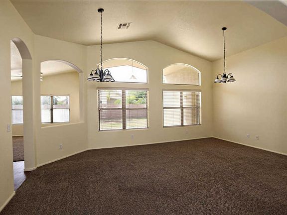 Beautiful, single-story home located in the highly desirable Meridian Pointe neighborhood. This move-in ready home is on a corner lot with North/South exposure. 3 Bedrooms with den, that can easily convert to a 4th bedroom, and 2 baths. Spacious kitchen offers plenty of cabinets, island and eat-in kitchen. Check out the brand new laminate flooring and paint throughout. The home is just across the street from the community park and the school bus stop is next to property. Located near L-202 and US60 freeways. This is one you won't want to miss!