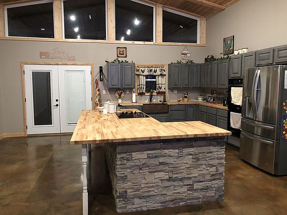 *Under Contract*. Custom Built home on 20+/- acres, fenced and cross fenced, large pond and room to roam. 3 bed 2 bath house built in 2017 features open floor plan, vaulted ceilings, stained concrete floors, large custom kitchen with W&W soft close cabinets, large island with electric range, double wall oven and copper sink. Living room has a high vaulted ceiling with gable windows and electric fireplace. Master bed room has very large walk in closet and adjoining bathroom with walk in shower. Laundry is off the kitchen. All insulation is spray foam, heat is 2 ton Bosch heat pump along with radiant heated floors in multiple zones. A tank-less water heater provides an endless supply of hot water, while the wifi digital touchscreen thermostat keeps the home comfortable from anywhere. A storm shelter was added for safety in the concrete next to the detached 2 car garage.
