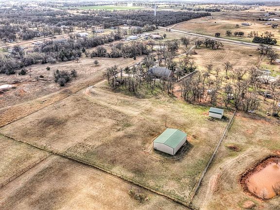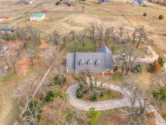Stunning 9.5 acre ranchette 36 miles from downtown OKC. Fabulous 3 bedroom, 3 bath home w/ Office & Bonus Room. This custom home offers a formal dining, office, upstairs bonus room/game room that could be a 4th bedroom. Great basement/storm shelter that has a wired in TV antenna to monitor the weather. Check out the huge Kitchen. Tons of cabinets, lovely granite, appliance garage big enough for coffee pot, toaster, mixers, and groceries. The primary suite has space for king size bed and sitting area, 2 large closets, double vanities, shower and jetted tub. Bring your horses and chickens. 35 x 50 Barn has room for 6 stalls, 2 roll up doors for turn outs, walk through doors, and large roll up doors. RV/Hay barn 16x20, 2 single stall loafing sheds. 2 additional sheds, property is fenced and ready to go. *Address pulls as Blanchard & Dibble