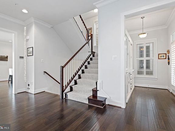 Absolutely stunning energy-efficient Buzzuto Sage home, tucked away within the Garden District in Fulton's highly coveted Maple Lawn community offering six bedrooms with over 4,700 sq ft of living space adorned with exceptional finishes. Enter through the front porch to the sun drenched open concept main level that highlights gleaming engineered hardwood floors, accent molding, soaring 10 ft ceilings, 8 ft doors recessed lighting and a neutral color palette that continues throughout. Prepare your favorite meals in the gourmet chef's kitchen fully equipped with a massive island, sparkling quartz countertops, mosaic tile backsplash, 42" soft close cabinets with lighting, double sink, pantry and stainless steel Energy Star Rated Bosch appliances including induction cooktop, range hood, and wall oven. Surrounded by natural light, the dining room showcases Western Windows System sliding glass doors that lead to the deck in the privacy fenced backyard with a paver patio and extensive hardscaping. The gas fireplace in the living room is perfect for kicking up your feet and relaxing. A bedroom on the main level is ideal for a home office and convenient for any lifestyle. Tranquility awaits you in the primary bedroom suite that boasts two walk-in closets, and a luxurious spa bathroom with a soaking tub, dual vanity, and oversized glass enclosed tile shower. Two additional bedroom suites with walk in closets and en suite bathrooms and a large laundry room complete the upper level. The top level is fully finished with another spacious bedroom suite that offers privacy from the rest of the home. Enjoy entertaining in the lower level that features an expansive family room, theatre room with surround sound wiring and a fifth bedroom suite with a full bathroom. Ultra-high energy efficient Bosch geothermal HVAC system with three zones, humidifier, two tankless water heaters, and solid core doors throughout. Take advantage of Maple Lawn's array of shopping, dining and amenities including an outdoor pool, community center, fitness facility, playground, picnic pavilion, tennis courts, multipurpose courts, library, and so much more!