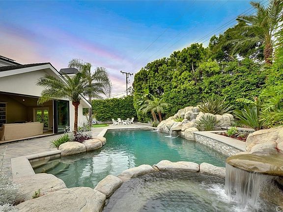 Rare opportunity to own one of the most exclusive homes in Rossmoor, extensive renovation, designer/builder touches, resort style backyard. one of the most sought after street locations. New stone banding, pedestal lighting, brick and wood siding. front door captures your attention, Custom wood details, engineered wood flooring, chiseled ledger stone Fireplace, Gourmet Kitchen with T&G ceiling, large island, all new cabinetry with quartz counter tops and back splash. Custom built entertainment cabinet, new 16 Foot "Mega" multi slide door opens to pool and spa for optimal indoor/outdoor experience to Yard featuring New and refreshed landscaping, irrigation, Malibu lighting, California room and bar/bbq area, pool bath, 3 hole putting, crackle glass fire pit. Two 1st floor bed suits w/direct access to this oasis. Venture to 2nd floor/curving staircase/wood treads/iron rails, 3 BR suits up: inc: an enormous master with updated Juliette balcony, bath w/ dual sink vanities, 2 walk in closets. Plus a huge "Finished Basement" for extra 870 sqft perfect for movie and game nights has Old World style wine room and two closets. Additional systems include 3 AC units, a brand new Presidential roof, New Milgard Fiberglass windows and French doors, Owned, Renewed and optimized Solar System, New Baldwin interior door hardware, first floor laundry room with direct access to three car garage. Close to Rossmoor Park and in Award Winning Los Alamitos School District