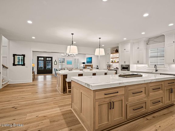 The finished lower level adds even more lifestyle flexibility, with a spacious family room, full wet bar, home gym, guest suite, and full bath. Additional highlights include a wrap-around front porch, 4-car garage with epoxy flooring and built-in cabinetry, home security system, irrigation and access to top-ranked Oldham County schools.
