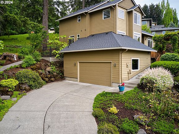 BACK ON THE MARKET WITH A BRAND NEW ROOF and GUTTER SYSTEM! Great curb appeal, dynamite location, a lovely dead-end neighborhood just steps from Stephenson School! Beautifully established landscaping intentionally and thoughtfully planted to create beauty in each season. Relax on the front porch and gaze at the awesome westerly territorial views! Bright formal living and dining room combination features a cozy fireplace for intimate gatherings. French doors off the entry open into a spacious den/office with a closet and adjoining bonus room. This space has the potential to be remade into an additional bedroom suite. The morning sun streams into the bright sunny family room, nook, and kitchen overlooking the back yard nestled against private property where the 2 resident cows come to visit along the fence, hoping for an apple or a few carrots. The kitchen, nook, and family room feature hardwood floors, a cozy fireplace, a cook island, pantry, and some built-ins. A rare layout provides three en-suite bedrooms round out the upper level. Don't miss the 15'X 20' step up storage in the back of the garage, there is room for everything! Conveniently located just minutes to Mountain Park, New Seasons, downtown, Lewis & Clark College, OHSU, Shopping, Dining, and Portland Community College.