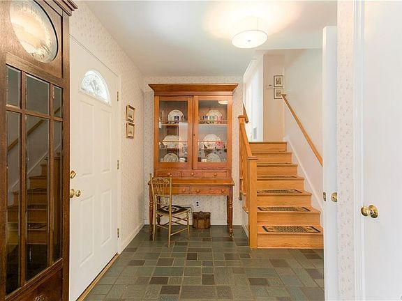 This wonderful 2300 square ft home on a quiet cul-de-sac sits on almost ¾ of an acre lot that has endless possibilities for future entertaining or play. A side door off the patio welcomes you to the large, cozy family room with wood-burning fireplace and brick surround. Also, on this floor is a half-bath and large utility room that serves as another entrance to the home with a potential woodshop area, laundry area, and additional shelving for storage. Up the stairs on the main level is the eat-in kitchen overlooking the large yard and more formal dining and living rooms with a nice sized foyer entrance. Hardwood floors are under the existing carpet. The third floor has a master bedroom with attached full bath with shower and then two additional bedrooms with a hall full bath with tub. The fourth floor boasts a very large room with two closets that could be the fourth bedroom or fantastic playroom or office. The yard has nice landscaping and a detached tool shed. Don't miss this one!