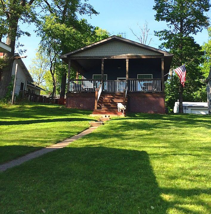 Watch the beautiful sun rise and set from your large deck on the most sought after side of Bruce Lake. Enter into the open living, dining & kitchen area from the deck, and enjoy the completely remodeled home with cathedral ceilings, wood beams, upscale kitchen with soft-close drawers, hard surface counters and glowing wood floors. Nice ceramic tile throughout the entryway, hallway and into the bathrooms. Greenguard certified products used in the insulation, flooring, & wall boards. Updates since 2010 include the furnace, water heater, solid 6 panel doors, windows, plumbing, electric, siding, and roof. Gutters have been run underground to deter water from the home. Convenient storage under the deck, as well as, a lakeside shed for lake toys. The unique cupula gives a peaceful feeling at night with a soft glow guiding you back home, a charming feature to this home. Spend your days swimming along the sandy shore and finish your summer nights with a bonfire by the lake, under the stars.