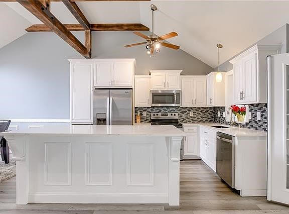 Move-In Ready!!! Brand New House Inside with Lots of Light! Grand, Spacious and Larger than some New Construction nearby. All new flooring (hypoallergenic- all carpet removed), new large kitchen island with granite countertop, all new cabinets, trim, molding, stone and tile throughout. Brand new Great Room with Vaulted Ceiling and Wood Beams and beautiful stone wall. ** 4th Bedroom is in lower level**New HVAC /// Cul-de-sac lotLarge flat yard backing to wall of trees that looks like your own Park with New wood privacy fence. Third garage in back has its own driveway.(There are a few trim items to be completed before closing) 2022-02-04