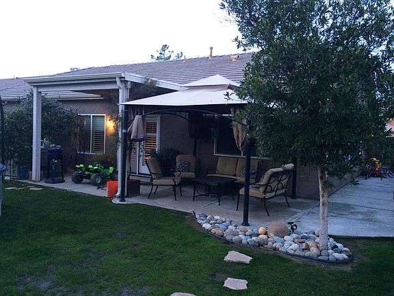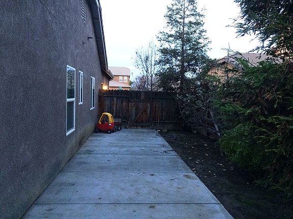 This lovely Centex home has only had one owner. We have made many upgrades including, Corian countertops, Rinnai tankless water heater, a double oven, french doors with wood shutters retractable screen doors looking into the lush backyard which includes many fruit trees and a separated fenced off play area and garden with raised vegetable beds. The back yard also has lots of shade with a covered patio and adjacent concrete slabs on of which wraps around the side yard. The house is also offset so you can have RV parking. There is a dog run area with concrete on the west side of the yard. The living area is an open floor plan with a large family room, gas fireplace and kitchen with bar area. There is a formal dining area with wood shutters looking out into the front yard. The master bedroom is large enough for a king bed as well as a crib. Off the master bedroom is the master bath and large walkin closet. The exterior has a highly desired elevation and the house faces north which is great for summer shade. The final two bedrooms have been well cared for and have designer paint. In the girls room you will find a charming design with crown molding and chair railing.