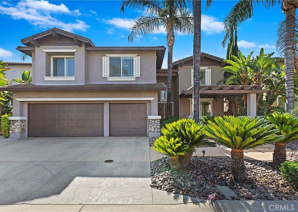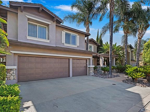 Highly sought after neighborhood. This home features a formal dining room, Separate living and family rooms, breakfast nook, office, loft, 1 bedroom and full bath on main floor. 4 Bedrooms including master suite upstairs. Recessed Lighting and Ceiling Fans throughout. Kitchen includes oak cabinetry, granite counters, with white built in appliances. Huge kitchen island with large breakfast bar. AC units newer, (2019) with whole house fan. Beautiful tile flooring thru out. The master bath features an oversized soaking tub and separate walk-in shower. Inviting rear yard, perfect for entertaining, with built in BBQ. Large luxury two story home in an amazing gated community, top rated schools & universities, shopping close by, and easy access to the 91fwy. A must see!!