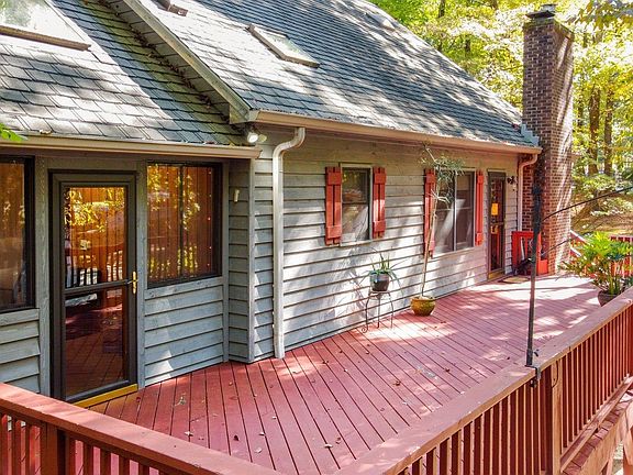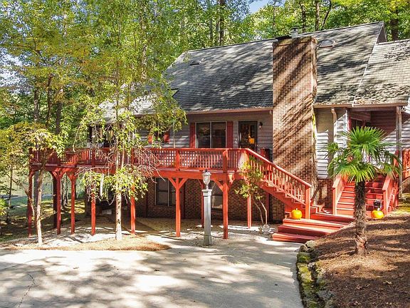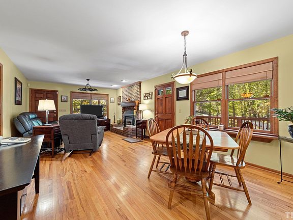 Wow! Unique & gorgeous setting overlooking pond! Mountain feel but close to shopping/540 & airport TONS OF CHARACTER! 1st Fl Mstr w/newly remodeled BA & walk in closets - Cozy Family Rm w/gas Frpl w/insert, opens to 2 decks! Kitchen w/newer dishwasher, Jennair cktp. 2nd floor features 2 nice sized BRs w/jack n jill BA & tons of walk in storage! Lower level w/huge room for bonus/office/game room full bath - amazing wksp, sink & storage. 3 Season Rm w/gas heat. Heat Pump. New roof w/50 year shingles.