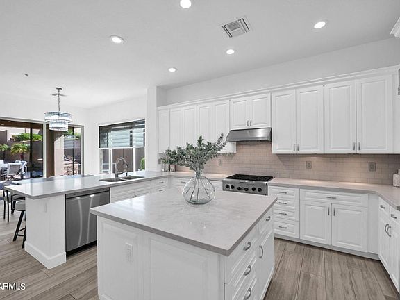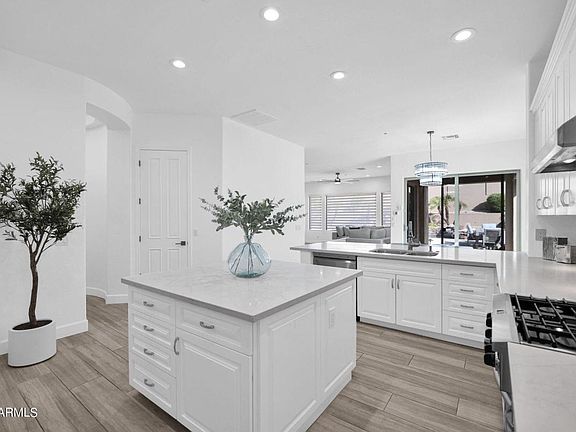 Sitting on top of the hill in 24-hour guard gated Cimarron Hills is this stunning, fully remodeled 4 bedroom + office, 3.5 bath home. The split floor plan features 2 king and 2 queen bedrooms. The second bedroom has an en-suite bathroom, perfect for guests. The kitchen features stainless steel appliances, quartz counters and a coffee/beverage station with a wine refrigerator. A private, resort-style backyard with a heated pool & spa, rock waterfall, a built in BBQ with a bar, a putting green and a covered patio with seating and a TV to take advantage of the beautiful indoor outdoor living that AZ offers. The exclusive Cimarron Hills community is just around the corner and offers a heated pool & spa, fitness center, tennis/pickleball courts and a clubhouse all set against the amazing backdrop of the McDowell Mountains. This home is close to several luxury resorts, chef-driven restaurants, world class shopping, top rated golf courses and great hiking trails.