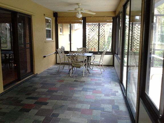 Beauitiful 3/2-CBS screened-in pool home with oversized detached 2 car garage. Home sits on a very private fenced 1.25 acre lot. The property is very tropically landscaped with a wide variety of fruit and palm trees .There are also many oak, maple, cypress and cedar trees, In addition to the garage, there are 3 outdoor storage sheds on the property. The house has plenty of oversized closets. The kitchen has a walk-in pantry and newer appliances. The AC unit and water heater are less than 6 years old. The master bedroom is extra large with 4 closets. There is a 20x10 Florida room and separate screened-in patio. Both bathrooms have been remodeled. The home has newer double pane vinyl windows. NO REALTORS PLEASE.