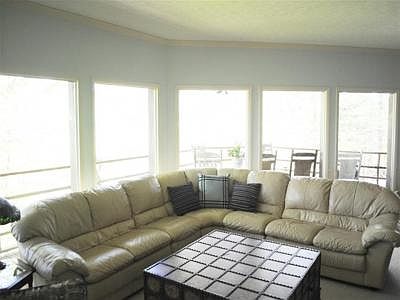 "You'll never want to leave home." Meander along the 3/10ths mile driveway to this cypress sided home nestled among the trees. Panoramic views from various vantage points - multiple decks & patio connected by a walkway & a bank of ceiling to floor windows are just a few. Interior main level features a sunken library w/multi-wall bookshelves & stone FP; open floor plan w/stone FP, combining living & casual dining areas & kitchen; formal DR; den & BRs w/private BAs. Finished LL, w/gathering room, 3BRs, BA & multi-use room (rec/media/6th BR), could be 2nd living quarters.