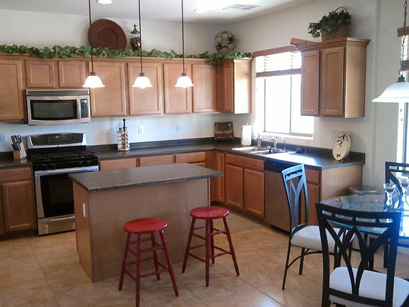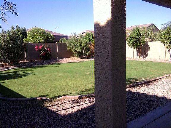 Bank approved price of $188,000 on 1/14/2011. Well maintained home in newer subdivision. Only 7 minutes to the highway, and one of the best values in the east valley. Vaulted ceilings create an open feel. Nice touches include stainless appliances, wrought iron banisters and wood floors in the den. Wired with On-Q system, and pre-wired with 5 surround sound in-wall speakers. The 5th bedroom is the office/den. The large yard has mature ficus, citrus and palm trees. Water softener, RO, washer/dryer do not convey.
