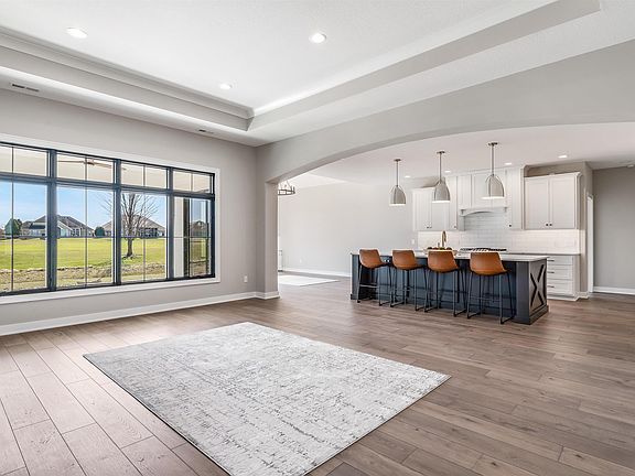 Contingent Incredible opportunity to own magnificent new construction ranch boasting spacious open concept layout, luxury & high end finishes plus back yard views of Hole #2 on Chestnut Hills championship golf course—in SWAC school district! Located in premier Chestnut Creek subdivision off Scott Rd, this completely move-in ready 3 bedroom, 2.5 bath home is sure to wow from moment you arrive! Nestled on quiet cul de sac & generous 0.35 acre lot, this 2023 built stunner oozes curb appeal w/aesthetically pleasing exterior of stone, vinyl & board & batten w/chance to design your own landscaping. Oversized driveway w/attached 3 car garage links to inviting covered porch w/room for seating & decor. Inside front door w/twin sidelights you’ll find bright & welcoming atmosphere complemented by wood flooring, crisp white trim, neutral color palette & stylish attention to detail, such as rustic modern lighting elements. Expansive main living area combines living/kitchen/dining allowing everyone to be together in beautiful space bathed in natural light. Elegant living area features tray ceiling & floor-to-ceiling stone fireplace w/ barn beam mantel flanked by custom build-ins w/big picture windows facing back yard. Huge kitchen island w/seating & cabinets on both sides separates living from chef’s delight kitchen containing abundant custom cabinetry w/under cabinet lighting, quartz counters, stainless appliances w/ cooktop/wall oven/microwave included & large walk-in pantry. Perfect for entertaining, dining enclave has exposed beam cathedral ceiling w/ chandelier & sliding glass doors to walk-out patio. Built-in cubbies in mudroom off garage next to half bath & laundry behind pocket doors w/ more build-ins & utility sink. Exquisite primary bedroom also has tray ceiling & spa-like en suite w/ large soaking tub, dual sink vanity, amazing custom walk-in shower w/ dual heads & walk-in closet w/ build-ins. Remaining 2 bedrooms are both comfortably sized w/ ample storage throughout; main shared bath has dual sink vanity & separate commode/shower room. Bonus study/flex room w/ wainscoting & French doors—excellent for working from home! Covered back patio is ideal for lounging in shade & watching golfers pass by on fairway, there’s even a ceiling fan to keep you cool! Other features to note: on demand/ tankless water heater & energy efficient appliances/doors/windows. Super convenient area minutes from shopping, dining & groceries along Illinois Rd w/easy access to I-69.