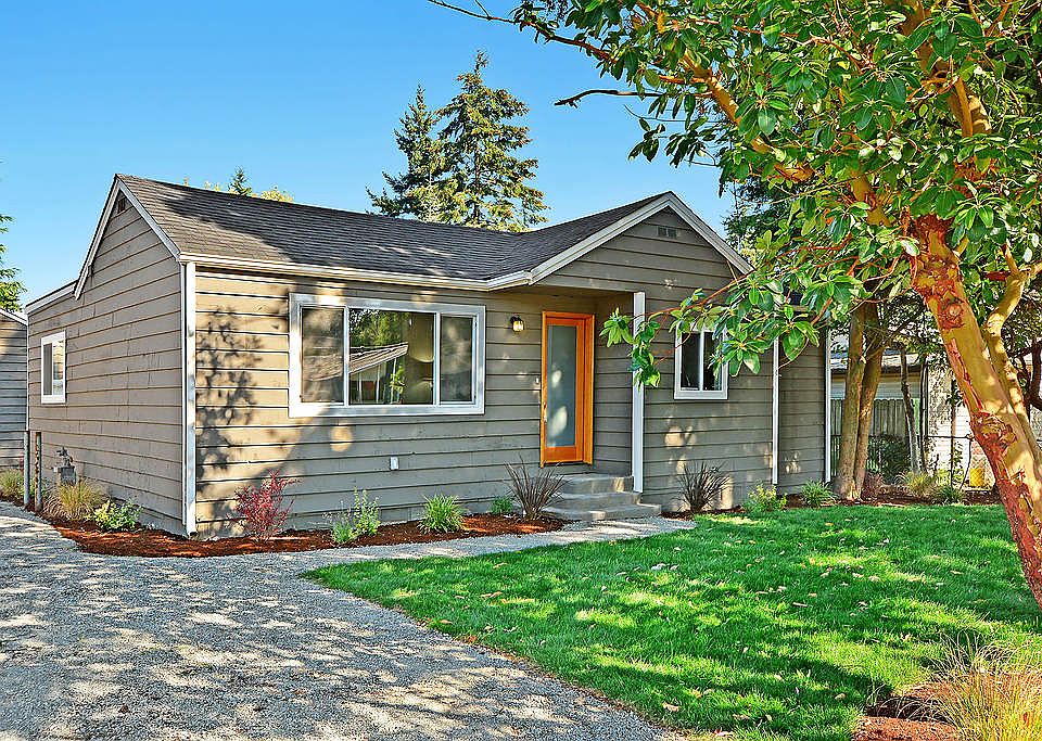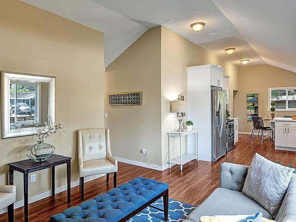 Beautifully updated rambler now available. New finishes throughout including flooring, windows, paint, etc ! Kitchen has shaker cabinets, quartz counter tops and ss appliances. Two bedrooms including master suite w attached 3/4 bathroom featuring a walk-in shower. Additional full bathroom is completely updated. Washer/dryer closet conveniently located. Large detached garage has attached studio space, perfect as a home office, guest suite, extended living & more! Sunny flat lot!