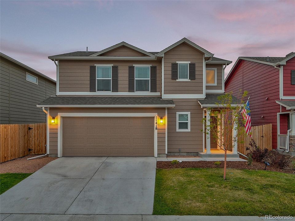Almost new home located in The Courtyards of Woodmen Hills! Low maintenance community! Eat-in kitchen has stainless steel appliances, granite countertops, large pantry and opens into the great room. Walk-out from the Kitchen area to the fenced, Xeriscaped (artificial turf in back) backyard! The Laundry Room is conveniently located upstairs near the 3 bedrooms. The Master Bedroom includes a sitting room area that would make a great reading room or home office area. As a member of the Woodmen Hills Metro District, you will have access to 2 Recreation/Fitness centers with swimming pools that offer childcare, swim lessons, sports activities, and more. The convenient location of this neighborhood makes for a quick commute to Peterson AFB, The Air Force Academy, and Schriever AFB.