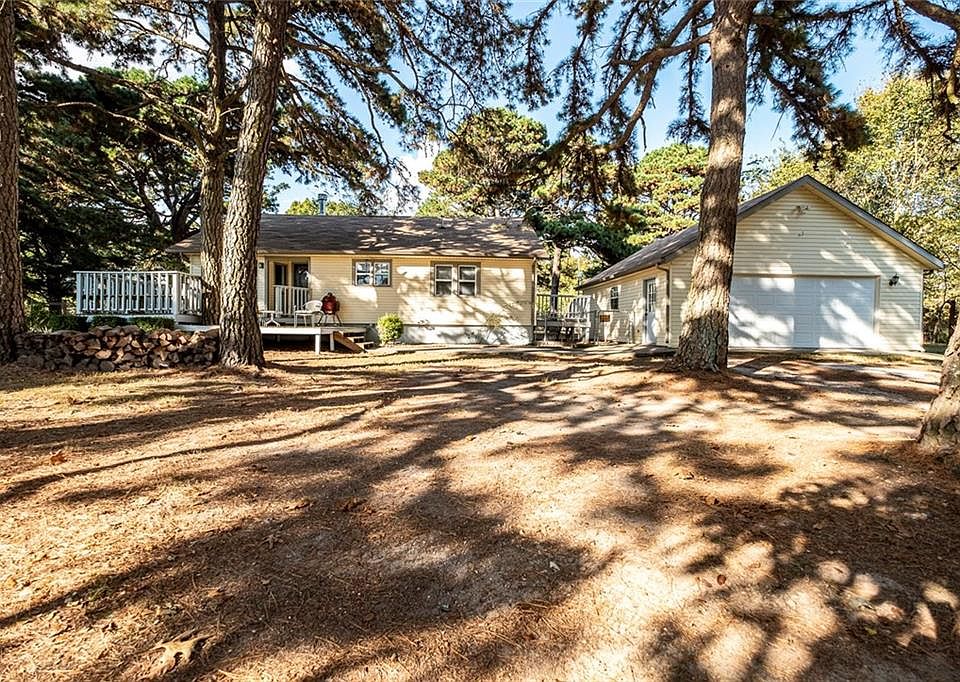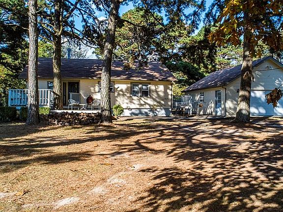 Cute Home on .88 acre! Absolutely beautiful lot with large trees,park like setting vey Close to Rogers,totally remodeled with granite counters and tile backspalsh,refurbished hardwood floors,tile entry,canned lights,stacked stone fireplace-woodburner with high efficiency wood insert,new kitchen cabinets,2 lazy susans,stainless steel sink,pantry,2 large bedrooms 2 baths and an oversized garage 793 sq ft insulated doors drive through doors on both ends finished walls and ceiling 220 electric & attic area,would be great for a workshop also,chainlink backyard,basketball concrete court,new roof 2-2020,fiberglass shower in master bath,tub in 2nd bath,pine trees,vinyl sided,