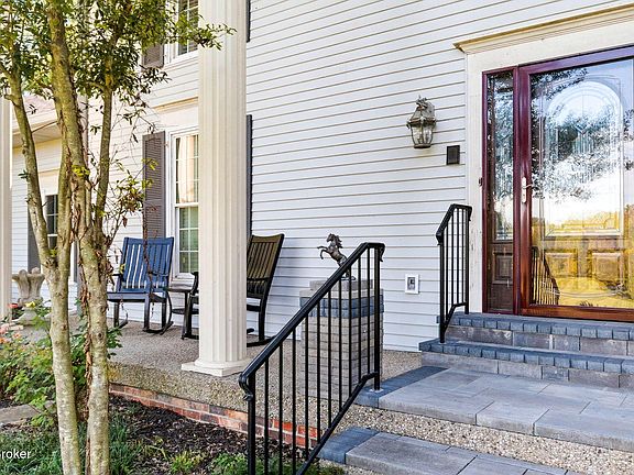 Nestled in the highly sought-after Goshen area, this exceptional stately manor offers privacy and tranquility on over 6 secluded acres. A welcoming front porch sets the tone for this inviting 4-bedroom, 3.5-bath residence. Enter through the leaded glass front door with sidelights. Hardwood flooring flows throughout, and custom millwork, including decorative ceiling medallions, grace much of the home. The main level includes a spacious foyer that leads to the formal dining room, situated perfectly for holiday dinners. The family room features a handsome wood-burning fireplace, coffered ceiling, chandelier with ceiling medallion, window seats with built-in storage, pegged hardwood flooring, conveniently located powder room, and access to the peaceful screened-in back deck that overlooks the in-ground pool, offering the perfect spot for morning coffee. The fully appointed eat-in kitchen is a chef's dream with a full complement of stainless appliances, including Samsung microwave & refrigerator, and Jenn-Air stove. The kitchen also offers a prep island, granite countertops, full-size pantry, bayed eating area, with a cozy buckstove fireplace as the centerpiece. The warmth of the sunroom that overlooks the scenic grounds beckons on crisp fall mornings. The main level is also home to an elegant living room sitting room. The second level welcomes you with a spacious and light-filled landing area that could also serve as an office or study. Upstairs, the primary suite offers its own spa-like en-suite bath with dual raised height vanities and large tub, hardwood flooring, and walk-in closet with custom built-ins. Also on the second level, the primary suite is accompanied by three additional generous-size bedrooms with large closets, one with its own fireplace, custom built-ins, and a full guest bathroom. The walkout basement provides even more living space with a family room with fireplace & wet bar, great room, full bath, laundry room complete with built-in ironing board, daylight windows, and abundant storage space. Additional upgrades include Plantation shutters throughout and new windows on the second-level landing. Enjoy resort-style living at home with an in-ground pool, screened porch, deck, patio, and a fully fenced backyard. An attached garage completes this private retreat, perfectly blending comfort, functionality, and natural beauty while still being conveniently close to Oldham County schools, restaurants, shopping, interstates, parks, and medical facilities.