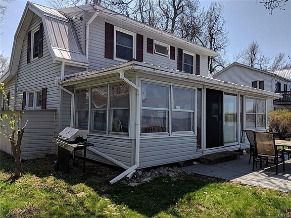 Quaint Lake Ontario Year Round Cottage nestled on a beautiful lot boasting 124' of lakefront close to Sackets Harbor! Come tour this fabulous find with an XL lot, beautiful level shoreline, lots of yard, 2 car garage, raised bed gardens, large paver patio and this very sweet home that can be used year round or as a cottage! Tons of character with original hardwood floors, knotty pine, 2 living rooms on main floor or one has been used as a main floor bedroom, full remodeled first floor bath, nice kitchen all redone, 2nd floor features 2 bedrooms and 2nd full bath! Large front 4 season porch overlooking the most impressive lake views! This home is just past the state park and close to Watertown, Sackets and located on a nice quiet road! Central AC, Generator and more! Don't wait, call today!