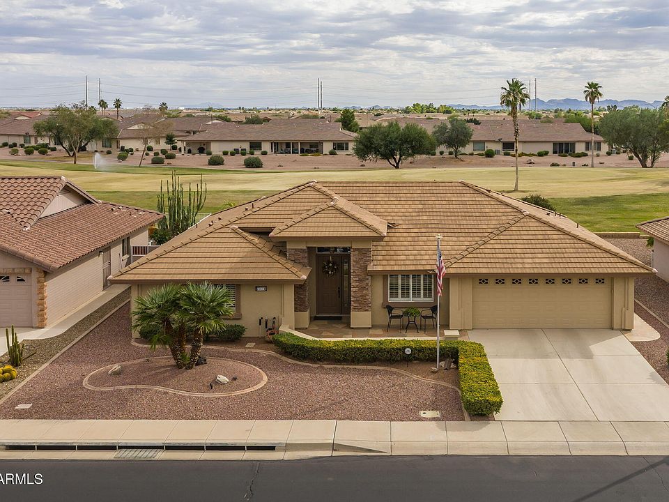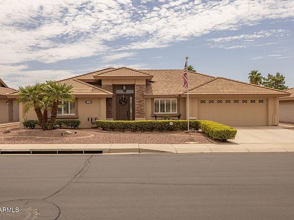 Here's your opportunity to make this spacious 2,169 sq ft golf-course home yours today! This home sits on a premium lot with a south-facing patio overlooking one of the 27 holes offered at this well-kept Sunland Springs Golf Course. Inside are vaulted & step-up ceilings w/ an open floor plan filled w/ natural light. This home offers 2 BR, a versatile den, 2.5 bathrooms, a lg living room & dining area, a breakfast niche, a lg kitchen w/ quartz counters, abundant cabinetry, and a spacious laundry room allowing for a craft, sewing or office area. Recent upgrades include new HVAC unit, new premium roof underlayment, new exterior paint, & a new water heater. The SS rec center offers tennis, pickleball, swimming, workout facility, bocce ball, shuffleboard, horseshoes, softball, & a pet park!