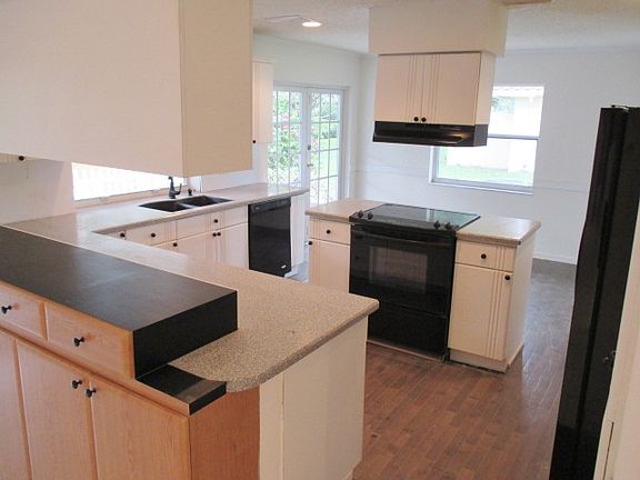 Lovely four bedroom pool home features wood and tile floors, open concept kitchen with cooking island, breakfast bar and tons of cabinet space. The home is a split plan with a large master suite with walk in closet and private bath with dual sink and separate tub and shower. The large family room has sliding doors that open onto a large, tropical pool and patio area. All Information recorded in the MLS is intended to be accurate but cannot be guaranteed, buyer advised to verify. Sold As-Is.