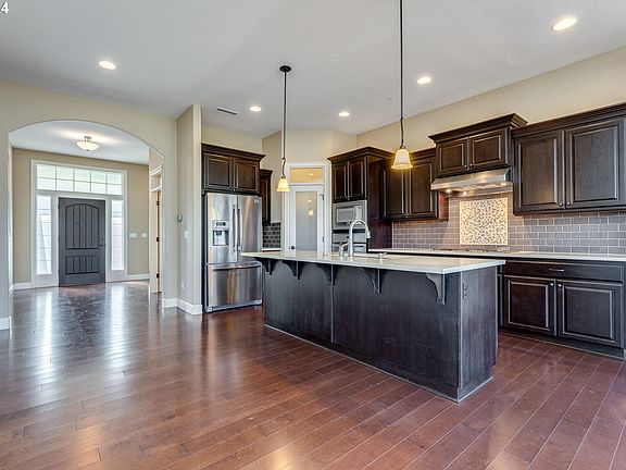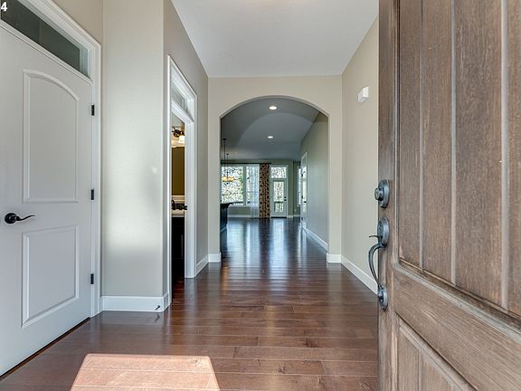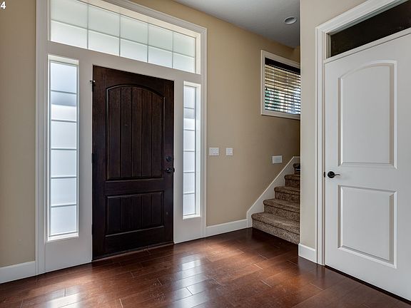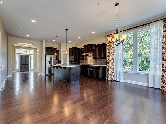 Escape into the serene beauty of Iron Ridge Park II. This Earth Advantage Platinum Certified Home, backs to a private and peaceful wooded green space. The protected wooded green space offers summer privacy while enjoying the two exterior deck. Enter into the foyer with high ceilings and wood floors, leading you to the beautiful kitchen with an island, spacious pantry, built in microwave and convection oven. Open to the dining area and family room with stone fireplace and large picture windows to enjoy watching the changing seasons or enjoy the main level deck off the dining area. Upstairs has a large primary bedroom with attached bathroom featuring a soaking tub and separate walk-in shower and large walk-in closet. In addition there are also three generous size bedrooms on the upper level and convenient laundry room. The lower level has a bonus room with gas fireplace and bedroom with walk-in closet, perfect for guests. The lower level has access to a second deck to relax and watch the occasional deer stroll through the woods. Main level two car garage provides easy access to the main level. This home features an energy star furnace and AC and is solar panel ready.