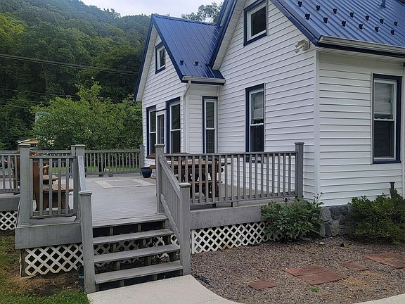 This little charmer has a lot to offer!! Situated on apprx a half acre that is about as flat as you can get, it is also surrounded by mountain views to appreciate.--would a pool be a possibility?? You would certainly have that as an option or fence it in for a great yard. The home itself has a fairly new metal roof, replacement windows, and vinyl siding leaving a nearly no maintenance exterior. Undoubtedly, the sun room that walks onto a large, gorgeous maintainence free deck will be the most favorite feature of the home. Although there is no designated bedroom on the main floor, there are two rooms that could be converted quite easily to accomodate someone who can't do steps. Imagine waking up in the sun room to a new day or eliminate the dining room and use it as the first floor bedroom--your choice, although upstairs is also two nice sized rooms as well. Although not a guarantee, this home may be a good candidate for USDA and definitely FHA. All appliances convey in their current condition.