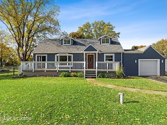 This charming Cap Code 1.5 story home is larger than it looks and is loaded with charm and character! No cookie cutter layout here. With 2 main floor bedrooms, 1 on the second level, and another possible in the basement there's room for all. In addition to that you'll enjoy the updated main floor bath, a beautiful Bay window and slider to the front deck in the living room, a unique kitchen with a large eat-in area, a slider off the kitchen which leads to a large deck. The extra wide fenced in yard is your blank canvas to do and add what you like, maybe a pool, a large shed, a garden, or dream big and add on a 3 or 4 Season room. It's the perfect yard for entertaining guests, or chilling out by the fire pit. Experience the feeling of country living in your own backyard. The second level of this home offers the 3rd bedroom with large skylight, 3/4 updated bath, a loft or flex space which can be converted into another bedroom, home office, gaming room or playroom, and a 2nd skylight. You'll find that the updated finished basement offers a 1/2 bath, potential 4th bedroom, laundry room with newer front load washer and dryer, and extra storage closets. You'll love the convenience of living minutes from the recently revitalized downtown Main Street, the Fox River, Clock Tower Park, bike trails, forest preserves, fitness centers, rec centers, dining, boating, and is ideally located near the Metra, the I90, Three Oaks Recreation Area, and big box stores in Algonquin, Lake in the Hills, and Crystal Lake.
