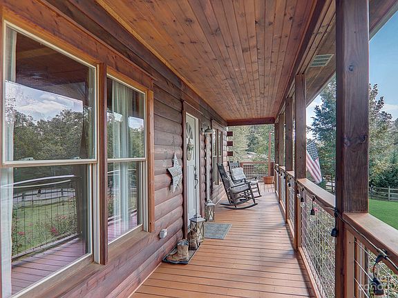 This 2 bedroom/2 bath Log Cabin located in Clearwater gated community is the perfect home! Walking into the home you'll notice the open floor plan and loft. The kitchen includes stainless steel appliances, a wine cooler, and recessed lighting. Beautiful woodwork throughout and high ceilings in the living room. This home has lots of charm with the architecture and decor. Outside there's an outbuilding for storage. The fenced in yard adds privacy and a safe place for dogs and kids to play. Enjoy entertaining by the firepit and the spacious porch. HVAC serviced in 2023. new gravel driveway. Charming Well Kept home. The gated community is a quiet, slow-paced neighborhood that includes a playground and a basketball court. Located just 15 minutes from Lake Lure, and 25 minutes to the Tryon Equestrian Center this is a great location with plenty to explore.