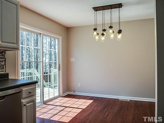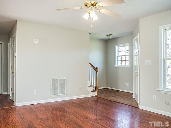 This Youngsville 1.5-story offers a fireplace, a deck, and a one-car garage. Upgraded features include fresh interior paint throughout.