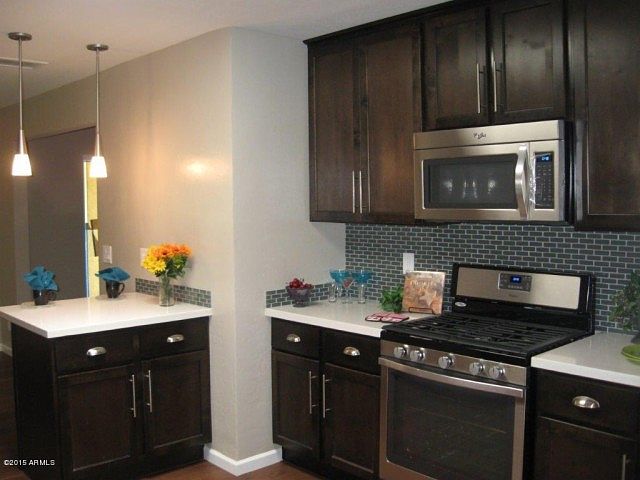 Remarkable remodel! Kitchen boasts quartz counter tops, glass tile backsplash, custom-built cabinetry with upgraded hardware, stainless steel Whirlpool appliances, and breakfast bar with pendant lighting . New flooring throughout! Carpet only in bedrooms. New upgraded lights, ceiling fans and fixtures throughout! Open kitchen-family room floor plan. Eat-in kitchen area. Bathrooms remodeled with stone vanity tops, tile surrounds in shower, new toilets, sinks, faucets, bathtubs and designer mirrors. Master bathroom has double sinks and huge walk-in shower with new glass shower door enclosure. ENORMOUS master suite with TWO walk-in closets, sitting room and separate exit to back patio. Good size secondary bedrooms; one secondary bedroom has its own bathroom. New water heater!