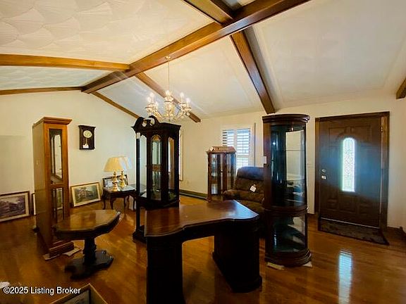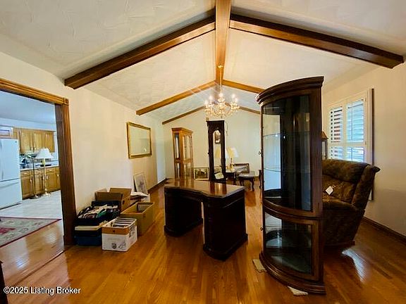 Spacious & comfortable three bedroom two bath brick ranch with two car attached garage situated on .69-acre lot located in Foxboro Estates convenient to all the amenities of historic Bardstown. Home offers 1777 sq. ft. of living space. Step into the vaulted Living Room offering hardwood floors & plantation shutters. Tiled Eat in Kitchen with tiled backsplash & comes equipped with appliances. Separate Laundry room is an added bonus. Niice Sunroom is the perfect spot to kick back & relax. Carpeted Primary suite with walk in closet & tiled Primary Bath. Two additional carpeted bedrooms & full tiled Bath complete the interior of the home. Outdoor features include black chain link fenced back yard & outbuilding for additional storage. Located near all the amenities of historic Bardstown.