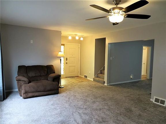 Spacious 4 bedroom home with lots of light and river views. New carpet, laminate flooring, and tile throughout. Upgrades include fresh paint, light fixtures, ceiling fans, stove and refrigerator, hot water tank, landscaping, switches and outlets, and more. Great entertaining spaces in the 3 season room, huge dining and living room, and there is office space off the main floor bedroom. Huge concrete driveway can accommodate multiple vehicles in addition to the garage. Close to shopping, entertainment, and short commute to the airport or Pittsburgh. Stainless kitchen appliances and home warranty already included!