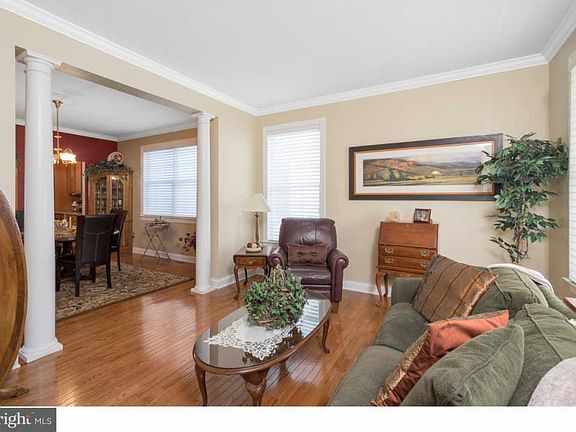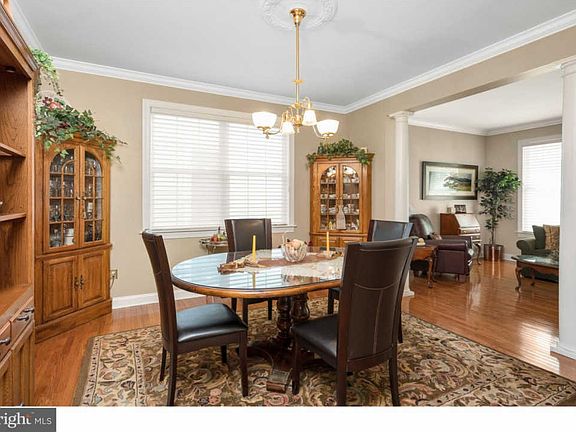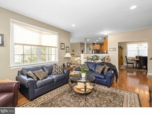 Beautiful Carriage III model situated on a premium lot, located across from picturesque views of the lake; that can be enjoyed from your front porch. Welcome to gleaming hardwood flooring throughout and a well functioning floor plan that is decorated with architectural columns, crown molding and custom Hunter Douglas window coverings throughout the entire home. Formal living and dining room combination flows effortlessly for entertaining. The kitchen is a pleasure with 42" cabinets, backsplash and new silestone counters. An adjacent breakfast area overlooks the backyard through sliding glass doors, that open to a gorgeous custom paver patio with paver seating areas and abundant space for gardening or play. Enjoy quiet moments in a cozy family room with a fireplace. Upper level boasts a palatial master suite with a walk-in closet, sumptuous bath offers dual vanities, soaking tub and over-sized stall shower. Two additional bedrooms share an hall bath. Elect to have the ideal home office or overflow space for guests or in-laws on the first floor; 4th bedroom is located on the main level and offers a rare adjacent full bathroom with tub. This worry-free home has been updated with newer 2-zone HVAC, hot water heater and upgraded vinyl fencing. Stroll along ponds, dine and shop - convenient to all major trains and commuting - Robbinsville Top Rated School District - this East facing home is an undeniable choice.