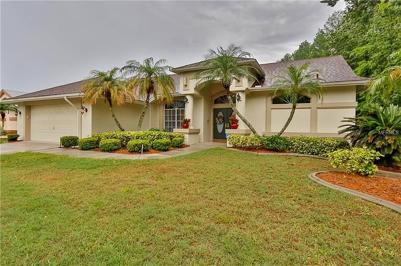 WOW! Remodeled Pool Home on conservation with new wood laminate floors in the entire property, even the bathrooms. Current owners have installed granite counters in kitchen and both bathrooms as well as new lighting and fans. Entire interior has been recently painted. Roof is 2012 and AC is 2011. Located in highly desirable Trinity/New Port Richey Area and Mitchell School District. Lot is fenced on 2 sides for your privacy with conservation on the other sides. The heart of the home is the Great Room which has soaring cathedral ceilings and opens out to the screened lanai, pool, and huge entertaining area for your parties with family and friends. The split floor plan gives everyone their individual privacy. The breakfast area and dining area are great for both informal and formal entertaining. There is an existing home warranty that is transferable until November 2018. This home is move-in ready and awaiting new owners. So come enjoy!