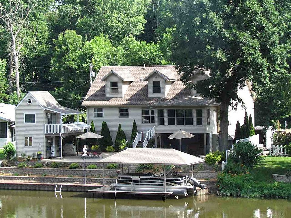 DECISIONS, DECISIONS...do you want to spend your time inside this beautiful 3600+ sq ft 4 bed/3.5 bath "HGTV"-style home with 2 master bed/baths, water-view sun room, and custom kitchen? OR is outside the place to be to enjoy the incredible 1700+ sq ft waterside patio which features a 1 bed/1 bath guest cottage/bath-house/summer kitchen, hot-tub alcove, and fire pit courtyard? Permanent boat lift, steel seawall, lower level garage with half bath, storage area and finished basement are just some of the additional amenities too numerous to mention here. Contact the owner for full list and a personal tour of this fantastic home and property!
