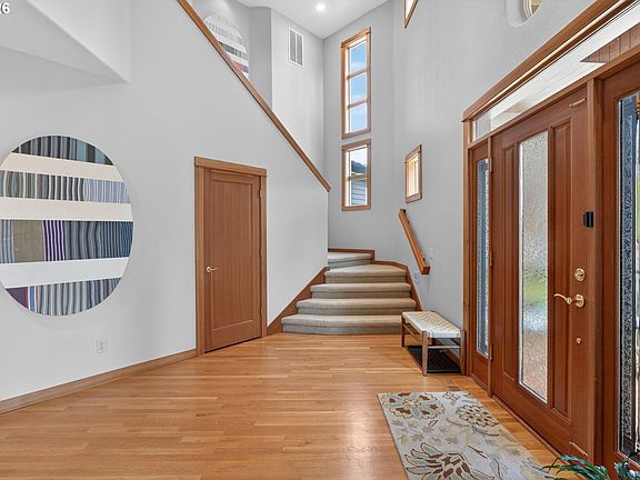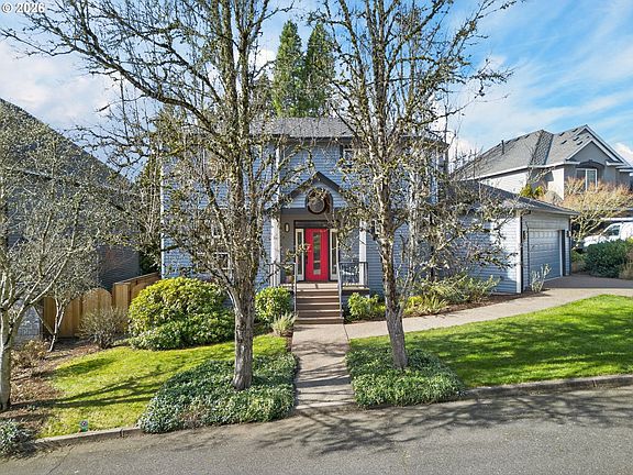 Custom built Forest Heights stunner! Impeccable condition & thoughtfully maintained throughout. The ultimate in privacy and serenity with warm wood accents. Gracious foyer opens to a dramatic, light filled two story entry. The formal dining room flows seamlessly into the broad shouldered great room with a stunning curved ceiling, recessed lighting, and handsome built-ins flanking the gas fireplace-perfect for cozy evenings! Take in the views of the backyard greenery & west facing sky views from the great room wall of windows. Open concept dining, great room & adjacent kitchen create the “heart” of the home. Spacious cook’s kitchen offers abundant maple cabinetry, generous prep surfaces, stainless steel applcs and hardwood floors. Enjoy daily meals in the light filled kitchen nook or elevated eating bar. Sought after large pantry is perfect for bakers and cooks! Easy outdoor access off the kitchen & great room provides effortless indoor/outdoor flow to the expansive deck & backyard—ideal for entertaining or dining alfresco. Large windows drench both levels in natural light. The upper level features three bedrooms & a guest bathroom with neutral finishes, tub/shower combo & linen storage. The generous primary suite enchants with abundant light & large walk-in closet. Beautiful ensuite bathroom featuring quartz counters, dual sinks, walk-in shower, and generous soaking tub. Spacious main floor den includes an inviting bench seat & handsome built-in’s- perfect for 4th bedroom, home office or TV room. Rare, level backyard offers single step down to enjoy the mature plantings, patio and fully fenced yard. Rare, flat driveway and zero step entry from the garage, makes daily living a breeze! Abundant storage throughout! AC and front & backyard sprinklers. A quintessential neighborhood on a quiet, level cul-de-sac. Outstanding schools; low Washington county taxes! Stroll to nearby trails, parks and the Village! Free shuttle to MAX line; close to Nike/Intel!