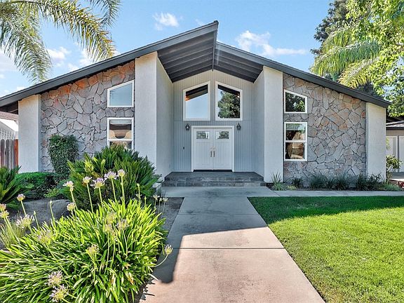 DREAM HOME ALERT! Enjoy the Modesto lifestyle in this fabulous 5 bed, 3.0 bath home with vaulted ceilings. It is a clean, renovated, and well-planned 3000 sq ft floorplan. This open floorplan features a formal living room, formal dining room, family room and bonus area. Gorgeous gas fireplace with dramatic black tile rising to the ceiling, and white mosaic surround with a white quartz mantle. The modern kitchen has beautiful red with silver accent quartz countertops and hardwood cherry cabinets, stainless steel dishwasher, trash compactor, built in microwave, refrigerator, and gas cooktop. Interior and under cabinet lighting highlights the attention to detail in the kitchen. Master suite has natural light and a spacious walk in closet. Master bathroom is luxurious with a sparkling chandelier over the jetted tub, multi-head shower, and marble vanity. There is even a second master suite with bathroom and larger closets. Exquisite light fixtures and deco throughout this gem. Pool is solar