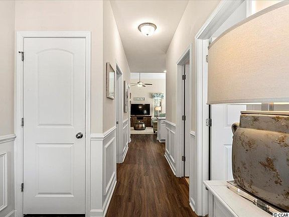 This one sizzles with style! A tranquil wooded setting is an exceptional backdrop for this impeccably maintained home in highly desirable Cypress Village. Upon entry, a wide foyer flanked with wainscoting greets you and leads to the fully open concept living area featuring a great room, kitchen and dining area that effortlessly flow into each other for easy living. Beautifully designed and appointed at construction with 12' vaulted ceilings, recessed lighting, LVP and tile flooring in all public areas, generous room sizes, many windows and Bluetooth speaker system in the great room. There is natural gas heat as well as a Rinnai tankless water heater. The quartz kitchen is the focal point and highlights a gas range, abundant cabinetry and counter space, including a fabulous wide counter height breakfast bar. Not to be missed are the extra details including under cabinet lighting, tiled backsplash and walk in panty. A generous first floor owner's suite opens to a well planned BA with oversized step in tiled shower, double raised sink vanity and huge walk in closet. An additional first floor bedroom, full bath and full sized laundry room complete the main level. This versatile floor plan also presents a 3rd en suite bedroom on the 2nd level which can easily function as a home office/den or media/library space. The oversized (1.5 car) garage with epoxy flooring is immaculate and will include storage cabinetry and work bench. Let's talk about the inviting outdoor living which is enhanced by an expanded/oversized rear screened porch for extended outdoor living and entertaining. Situated on a well landscaped homesite with in ground irrigation. HOA includes lawn maintenance for front and side yards. Cypress Village is a natural gas community. Owners enjoy a community amenities center including resort style outdoor pool, pickleball, fitness room, putting green, catch and release fishing and more. Convenient to all the attractions of Little River, Brunswick County, NC, North Myrtle Beach and Hwy 31. Don't miss this one!